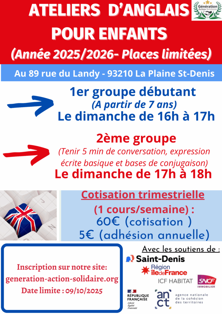Les ateliers d’anglais sont de retour à partir du dimanche 12 octobre 2025.