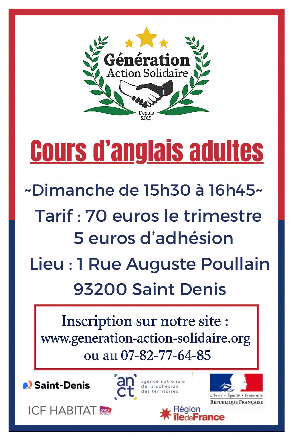 Les cours d’anglais pour les adultes ont lieu chaque dimanche de 15h30 à 16h45.